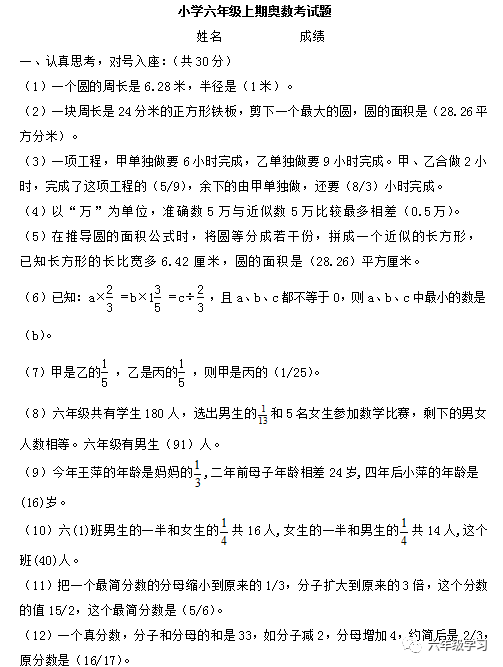 1 分数乘法2 位置与方向(二)3 分数除法4 比5 圆确定起跑线6 百分数(一)7  扇形统计图节约用水8 数学广角──数与形期中期末