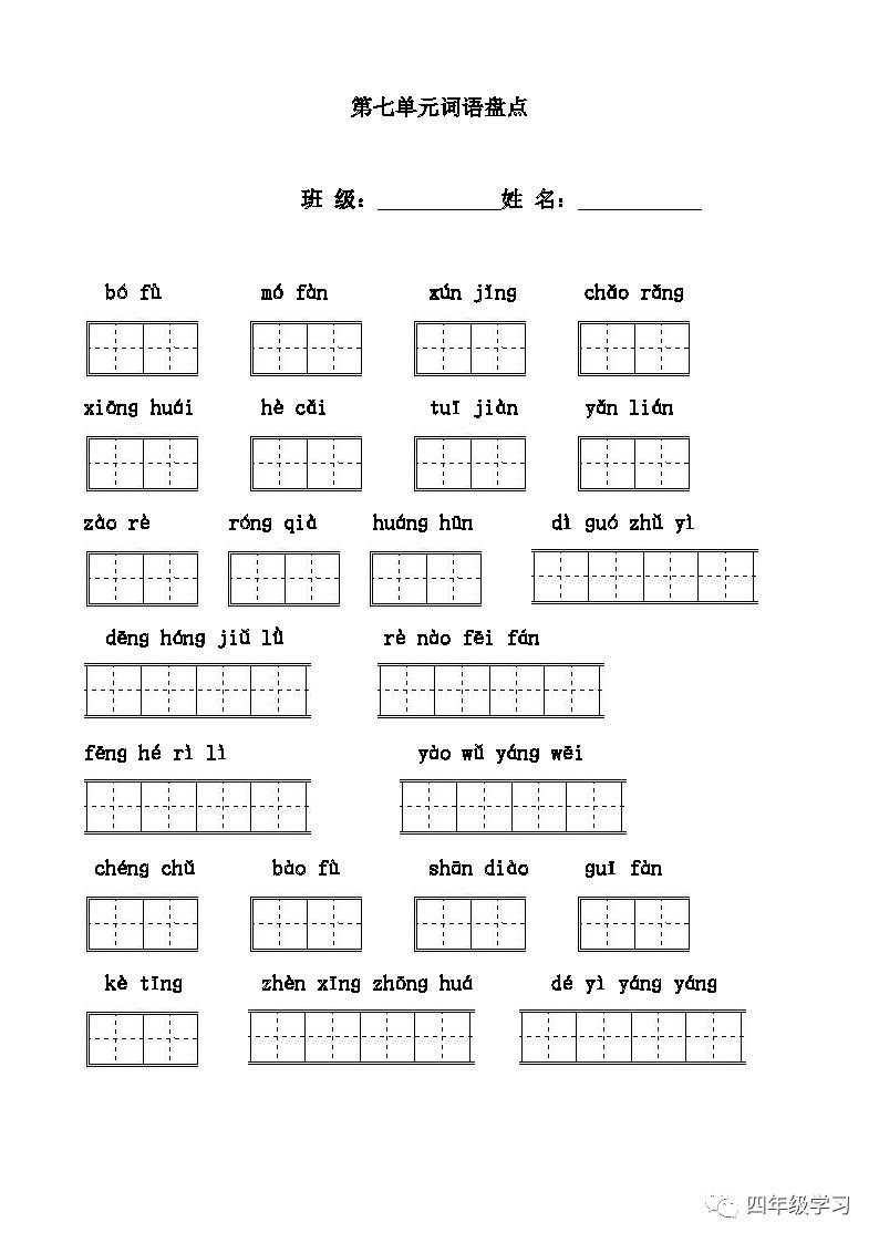 人教版四年级上册第七八单元看拼音写词语