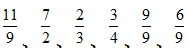 (9)在这些分数中,真分数有( ),假分数有( ),最简分数有( ),同分母分数有( )。