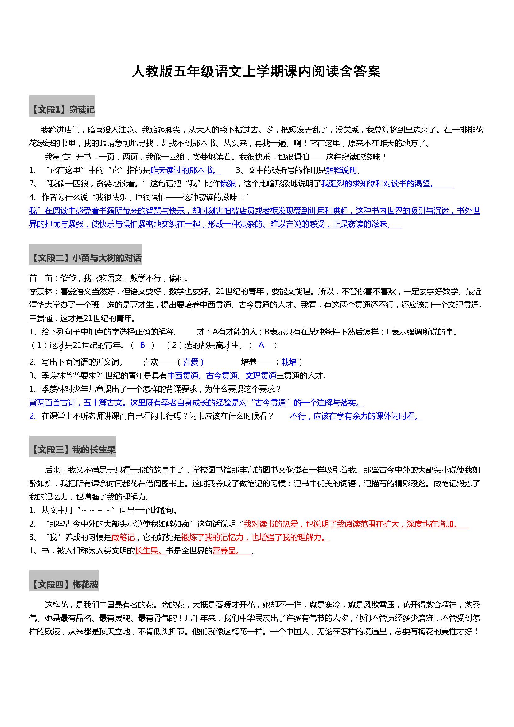 第一单元1 白鹭2 落花生3 桂花雨4 珍珠鸟口语交际:制定班级公约习作:我的心爱之物语文园地一第二单元5 搭石6 将相和7 什么比猎豹的速度更快8 冀中的地道战习作:“漫画”老师语文园地二第三单元9 猎人海力布10 牛郎织女(一)11 牛郎织女(二)口语交际:讲民间故事习作:缩写故事语文园地三第四单元12 古诗三首13 少年中国说(节选)14 圆明园的毁灭15 小岛习作:二十年后的家乡语文园地四第五单元16 太阳17 松鼠习作例文:鲸习作例文:风向袋的制作习作:介绍一种事物第六单元18 慈母情深19 父爱之舟20 “精彩极了”和“糟糕透了”口语交际:父母之爱习作:我想对你您说语文园地六第七单元21 古诗三首22 四季之美23 鸟的天堂24 月迹习作:____即景语文园地七第八单元25 古人谈读书26 忆读书27 我的“长生果”口语交际:我最喜欢的人物形象习作:推荐一本书语文园地八【生字表(一)】【生字表(二)】五年级语文上册资料