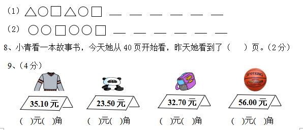 2、人民币的单位有( )、( )、( )。(1.5分)