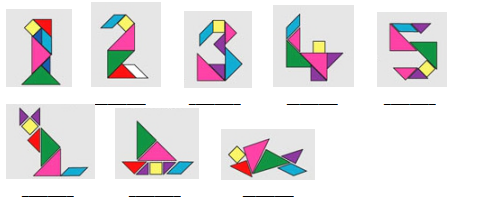 8. 看看下面拼出的七巧板,说说是什么。你还能利用七巧板拼出其他图形来吗?