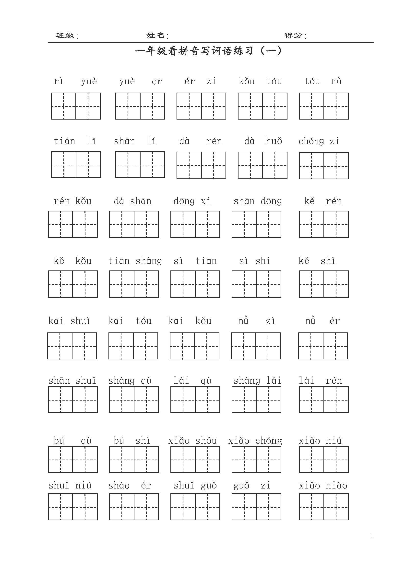 部编版一年级上册语文看拼音写词语